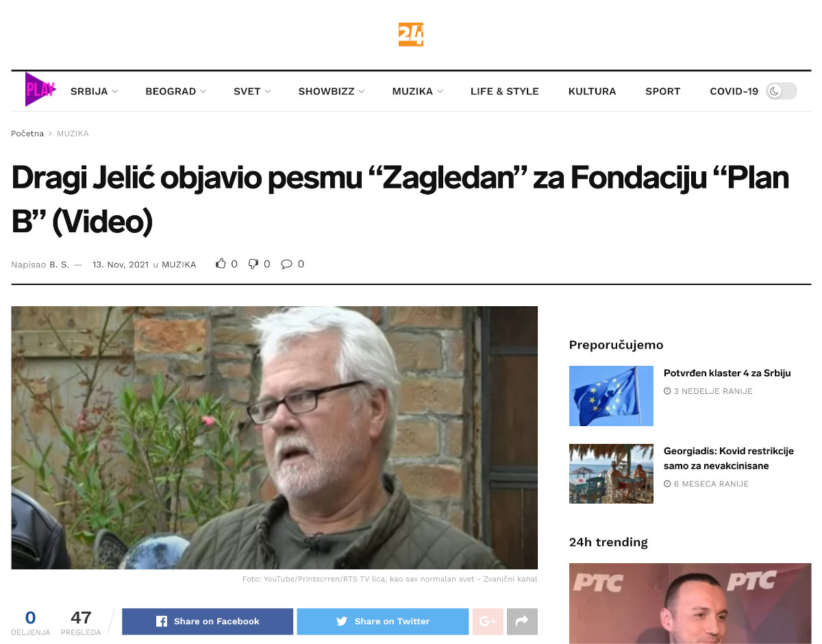Dragi Jelić objavio pesmu “Zagledan” za Fondaciju “Plan B” (Video)