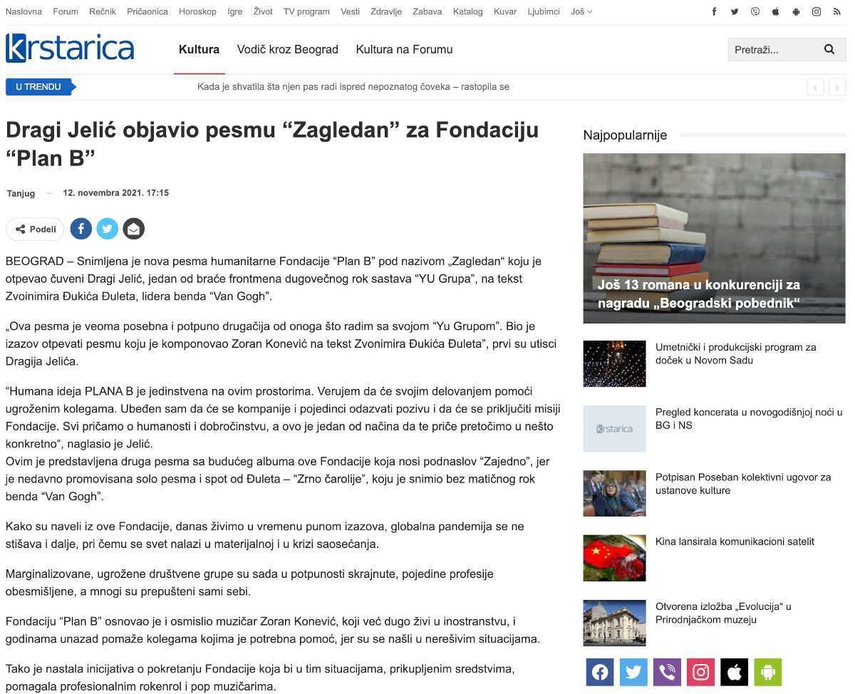 Član novoosnovane fondacije “Plan B”, koja ima za cilj pomoć ugroženim muzičarima širom regiona, je i frontmen grupe “Van Gog” Zvonimir Đukić Đule. On je povodom predstavljanja ove fondacije promovisao […]